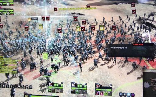 KUF2は,アクションRPG,MMORPG,RTSといったジャンルが融合させ,「戦場」を軸とした幅広いコンテンツ/プレイスタイルが楽しめるオンラインゲームである。今回の出展バージョンでは,短いプレイ時間で来場客に魅力を伝えるべく,比較的シンプルな「ヒーローの操作に専念できるアクションRPGモード」と,上級者向けの「ヒーローに加え配下の軍勢を率いて戦うRTSモード」の2通りから選べるようになっていた。とりあえず今回は,RTSモードの直撮りムービーを掲載してみたので,ぜひチェックしてみてほしい。