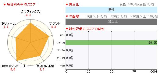 グラフィックス サウンド 快適さ/運営 熱中度/ストーリー ボリューム 5 4 4 5 4 -