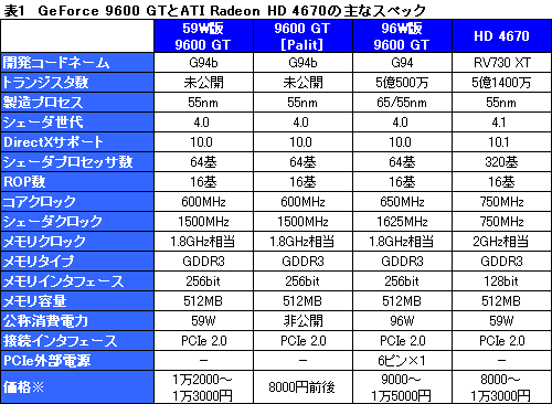 それにしても,G92コアではあれだけリネームしておきながら,公称消費電力96W版と59W版で,製品名をまったく変えなかったNVIDIAの対応はいかがなものかと思う。59W版は,もはや9600 GTという名を使わなかったほうが,ユーザーの混乱を防げたのではないだろうか。