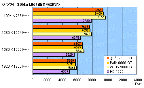 補助電源コネクタを持たないという点では同じ条件のPalit 9600 GTと,消費電力で明確な違いが生じている点にも注目したい。