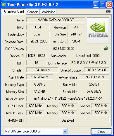 外部電源不要の59W版GeForce 9600 GTを検証する。消費電力は最大で2割減に