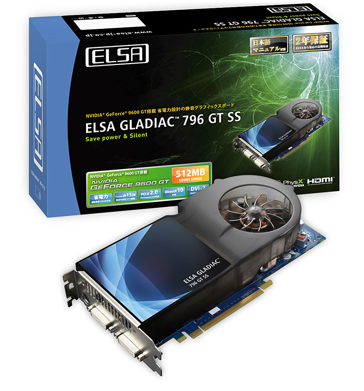 ELSA,2スロット外排気仕様&補助電源不要の9600 GTカード発売