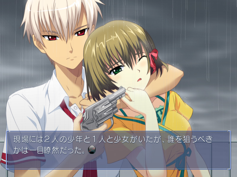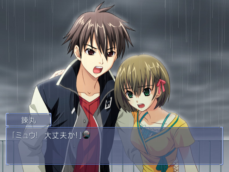 ストーリー上のヒロインとなるミュウに,ほかのキャラクターが絡んで物語は進行してゆく。すでに述べたとおりヒロイン攻略という要素がなくなっているぶん,キャラクターゲーム的色彩は薄まり,サスペンスアドベンチャー指向がより強くなっている。とはいうものの,練丸とミュウの関係には,やはりキャラクターゲーム的要素があって,「ヒロインを守るために行動する主人公」という王道は守られている。