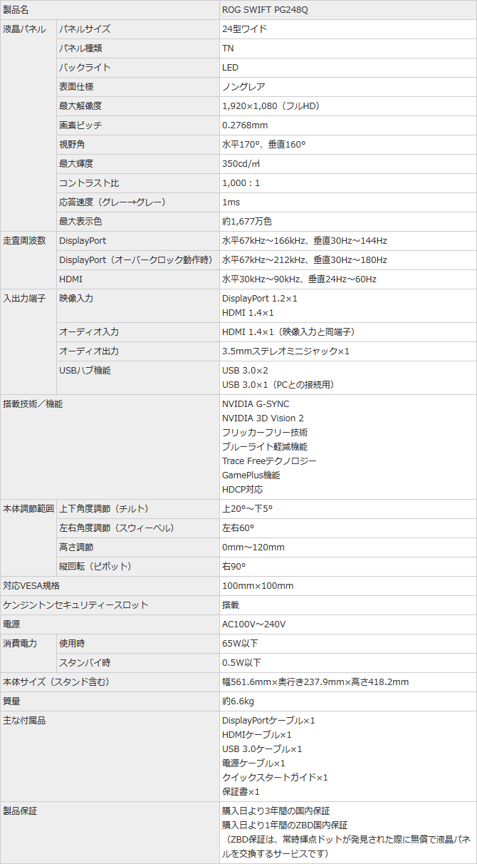 [TGS 2016]ASUSTeK Computer,最大垂直リフレッシュレート180Hzの液晶ディスプレイ「ROG SWIFT PG248Q」をTGS会場で発表