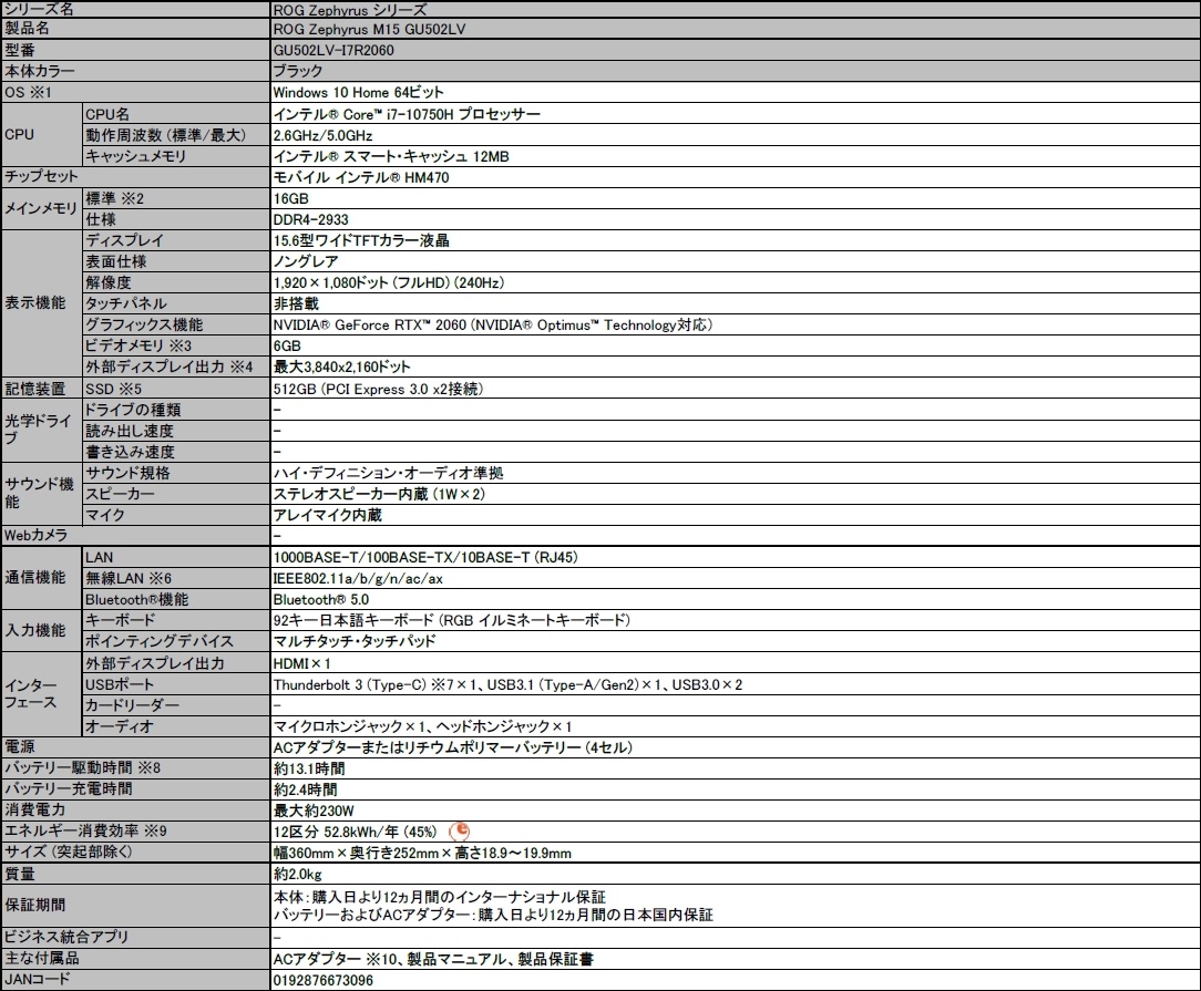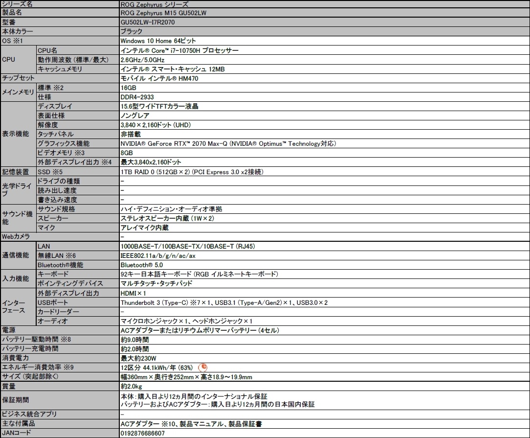 ASUS,i7-10750HとRTX 20シリーズGPU搭載のノートPC「ROG Zephyrus M15」計2機種を発表。Ryzen 7搭載で約15万のノートPCも