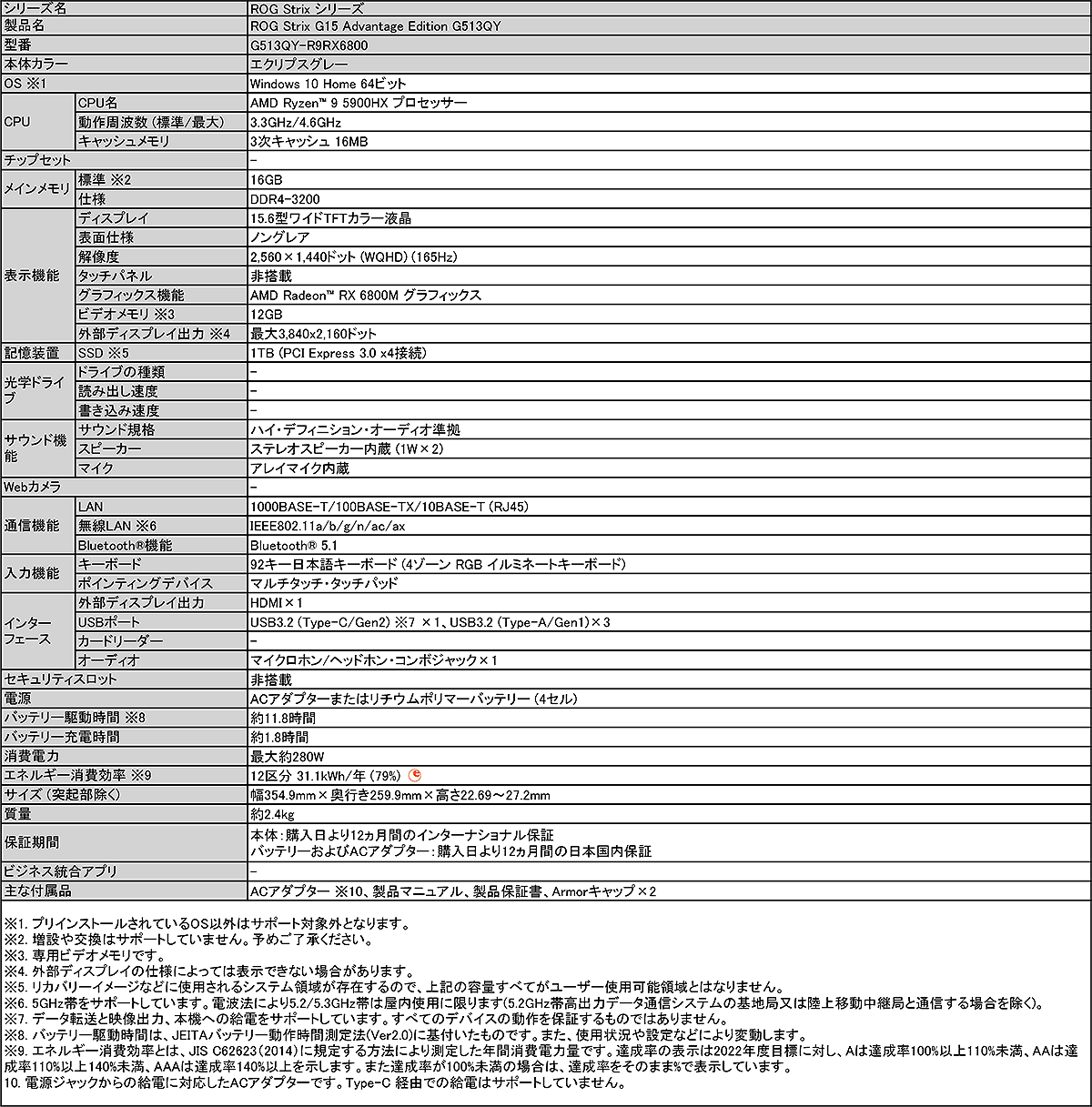 ASUS,Ryzen 9 5900HX&RX 6800M搭載の15.6インチハイエンドノートPCを発売
