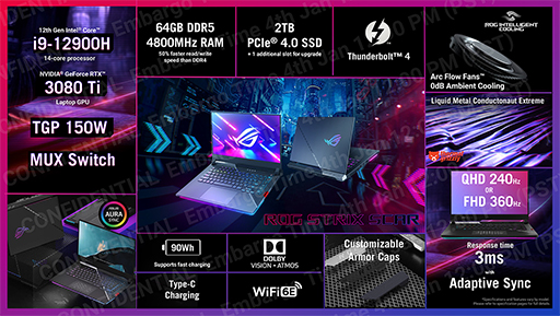 eスポーツゲーマーやコアゲーマー向けを謳うノートPC「ROG Strix Scar」シリーズからは,15.6インチモデル「ROG Strix Scar 15」と,17.3インチモデル「ROG Strix Scar 17」が登場した。いずれもCPUにCore i9-12900Hを,GPUにGeForce RTX 3080 Tiを採用するのが特徴だ。