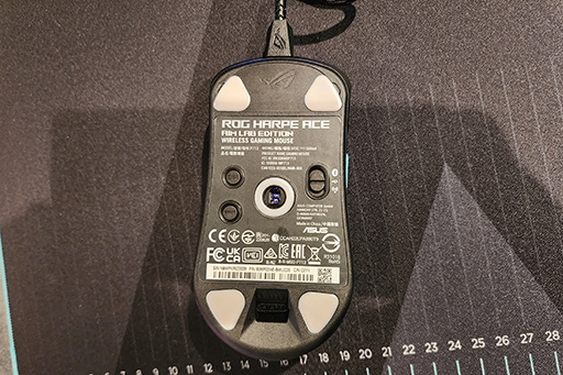 Harpe Aceは,ASUS独自のコンポーネントを多数採用しているのもポイントだ。たとえば,搭載センサーは独自の光学式センサー「ROG AimPointセンサー」で,トラッキング速度は650 IPS,最大加速度は50Gと,数年前のハイエンドセンサー並みの性能を有する。