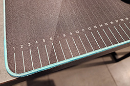 サイズは大きめで,縦横ともに約50cmほどの面積がある。手狭な机に設置するのは,ちょっと苦労するかもしれない。表面は,水や油をはじく加工を施しているので,キーボードやマウスの周りで飲み物を飲んだり,お菓子をつまんだりする人には,掃除しやすいHone Aceの仕様はありがたいだろう。