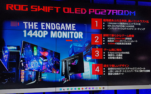 すでに発売済みであるが,発表会でASUSは,ROGのeスポーツ向けディスプレイ「ROG Swift 360Hz PG27AQN」(以下,PG27AQN)もアピールしていた。メーカー想定売価は17万8920円である。