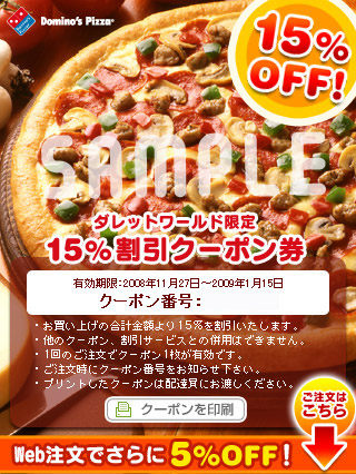 「ダレットワールド」でドミノ・ピザを頼むと最大20%オフに!