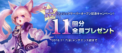 ■今なら限定ガチャ11回分を全員にプレゼント中!