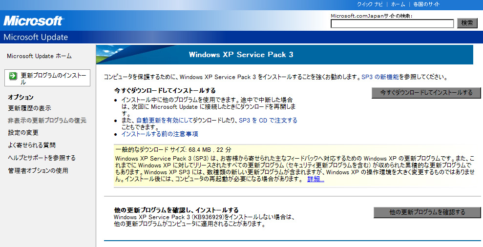 Microsoft,Windows XP SP3を一般公開。Windows Updateから入手可能に