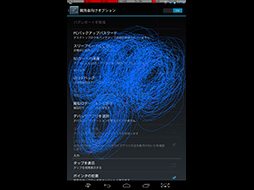 最後に,Androidの「開発者オプション」を利用して,ドラッグ処理に対する応答性を検証してみた。これは「開発者オプション」にある「ポインタの位置」を利用するもので,シングルタッチと5点マルチタッチで1分間ドラッグ操作をし続けて,処理が途切れることがないかを確かめるというテストだ。