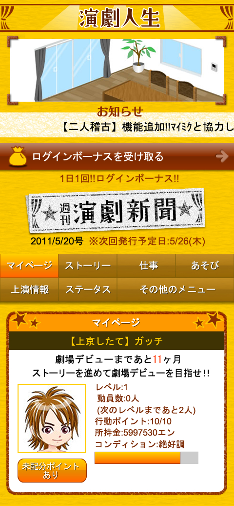 mixiアプリ「演劇人生」のスマートフォン版がmixi Touchで6月より配信