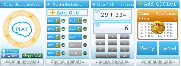 iPhoneアプリ「暗算は体で覚える!」を無料で配信。世界ランキングにも対応