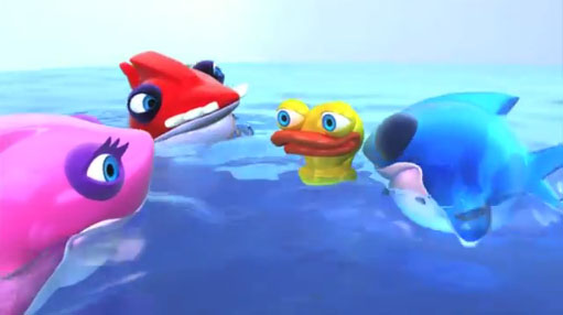 シャークの「シャーキー」と個性豊かな仲間たちが平和に暮らすバスタブに、ある日、意地の悪いアヒル連中が押しかけてきた!