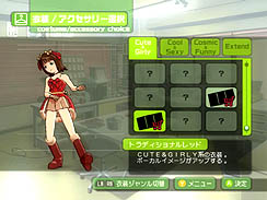 アイドルによっては,初期パラメータが低い女の子もいて,そういう場合は地道にレッスンを重ねるわけだが,DLCでパワーアップという方法もある。つまり,ボーカル,ダンス,ビジュアルの各イメージを上昇させる衣装やアクセサリーを購入するわけだ。