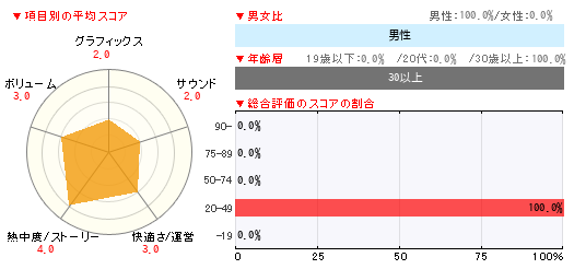 グラフィックス サウンド 快適さ/運営 熱中度/ストーリー ボリューム 2 2 3 4 3