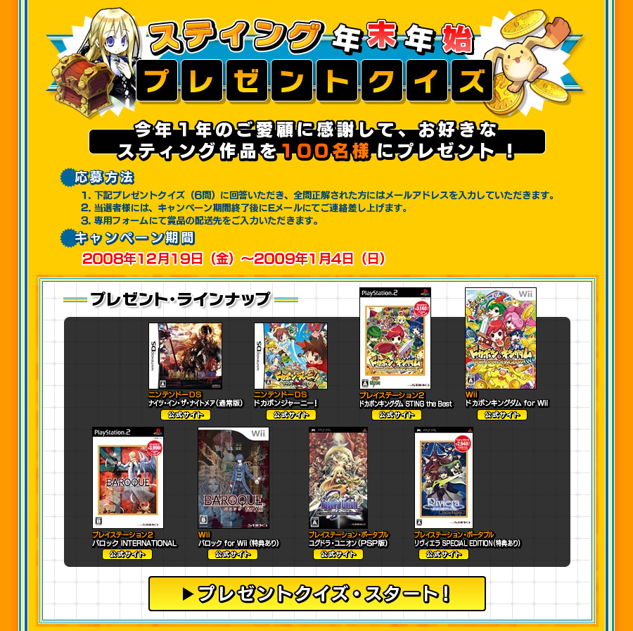 スティング作品が合計100名に当たるプレゼントクイズキャンペーン