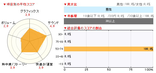 グラフィックス サウンド 快適さ/運営 熱中度/ストーリー ボリューム 3 4 3 3 2