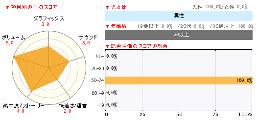 グラフィックス サウンド 快適さ/運営 熱中度/ストーリー ボリューム 3 3 2 4 5