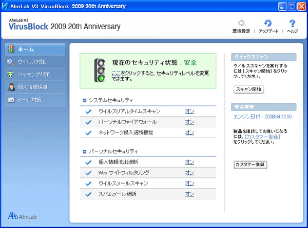 オンラインゲームに特化したセキュリティソフト「V3ウイルスブロック 2009 プラチナ 20th Anniversary」の体験版を4GamerにUp