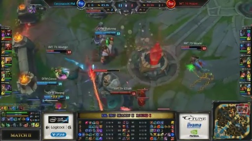 DetonatioN FocusMe(以下,FM)は,昨シーズンの覇者。jungleとsupportに韓国人選手を迎え入れ,新体制で今シーズンに臨む。対するImmortals 7th heaven(以下,7h)は,つい先日にプロチーム化を発表したチームで,韓国リーグの元プロ選手2名を迎えている。韓国の強力な選手を擁する7hに対して,昨シーズン覇者であるFMがどういった戦いを仕掛けていくのか,大きな注目が集まる一戦となった。