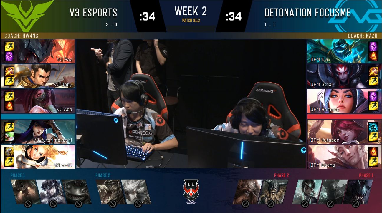 「LJL 2019 Summer Split」Week2 レポート。V3がDFMを下し,CGAとともに全勝で首位に