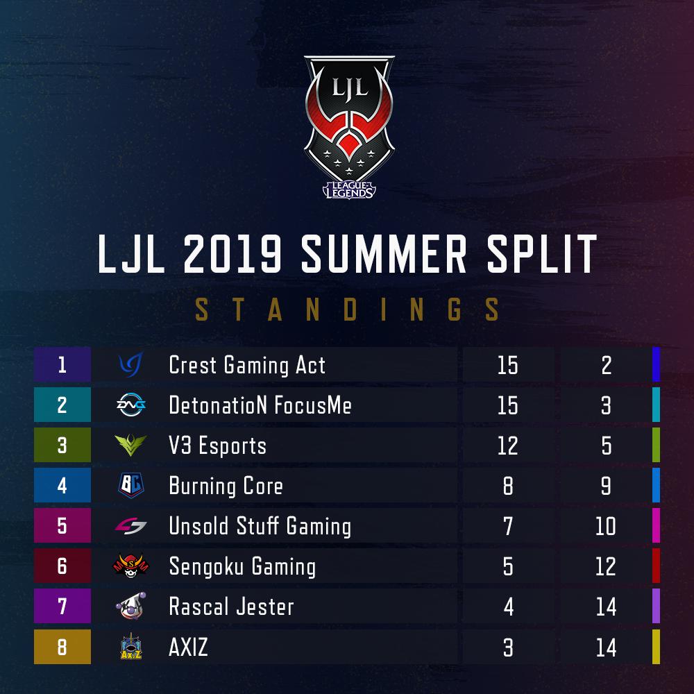「LJL 2019 Summer Split」Week8,9レポート。プレイオフ進出の3チームが決定