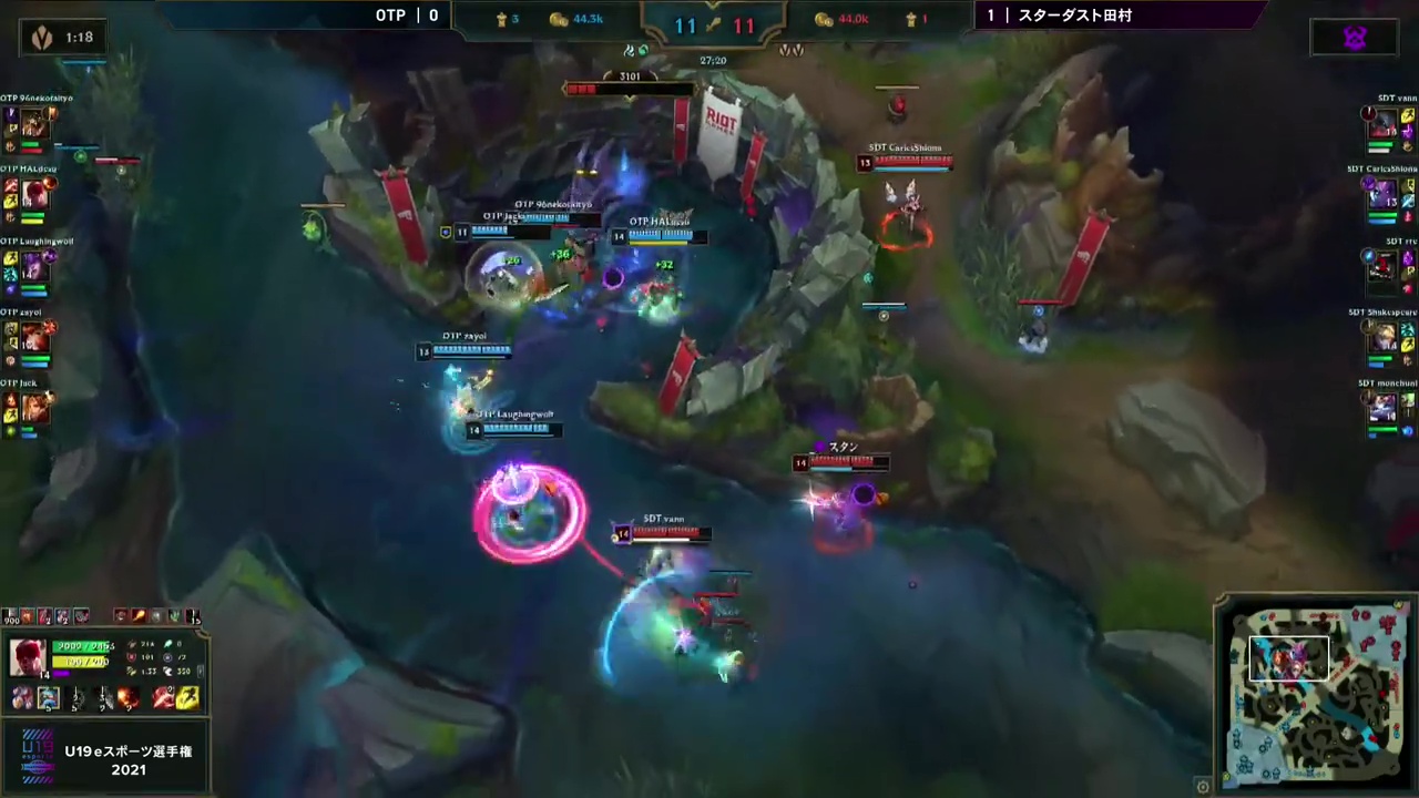 「U19eスポーツ選手権 2021」の決勝大会がGメッセ群馬にて開催。19歳以下のプレイヤーがチームを組んで,「リーグ・オブ・レジェンド」の頂点に挑んだ