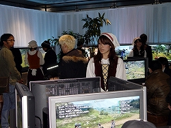 その後,一般参加者達に試遊台が開放され,白騎士物語に惚れ込んでいる約100名が,4人ずつに分かれてライブパートを楽しんでいた。巨大なモンスターに対して,まずは足に攻撃をしかけて跪かせ,下がった頭部に強烈な一撃を叩き込むなど,初めて遊んだとは思えないような技を披露するプレイヤーがちらほらと見られ,操作性の良さと,戦闘システムの奥深さが端から見ていても実感できた。
