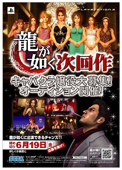 PS3で「龍が如く」次回作が始動。キャバクラ嬢役オーディション開催