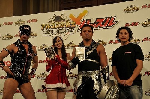 Wii専用ソフト『アルゴスの戦士マッスルインパクト』に同梱されているアンケートハガキをテクモに送ると、なんと、先日行われたスペシャルイベント『アルゴスの戦士ハッスルインパクト』出演レスラー達による直筆サイン色紙が抽せんであたる!「ハッスル軍寄せ書きVer.」、「モンスター軍寄せ書きVer.」をセットにして計5名様に。アルゴスファイターも登場した伝説のイベントの模様は、公式WEBで順次動画公開されるぞ。この機会を見逃すな!