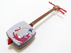 小松屋は2018年10月23日,「ファイナルファンタジー」シリーズのイラストなどでおなじみ・天野喜孝氏とのコラボレーションによる“次世代三味線”の完成を発表した。皮の部分に,天野氏による妖艶なオリジナルキャラクター「シャウラ」が描かれた,素材も特別な三味線だ。