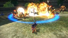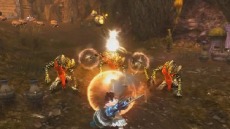 遠距離スキル「シューティングレイ」。分裂した砲弾を空中で爆発させ、一帯を焦土と化す |