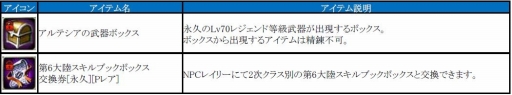 また、追加要素としてシャドウダンジョンで手に入る「アルテシアの聖物」を材料に、レジェンド等級の「アルテシアの防具」が制作可能となりました。また、アップデートを記念して、新たにLv57のキャラクターを作成できる「ジャンピングイベント」を開催しております。今回の「ジャンピングイベント」では、レジェンド等級の武器や永久の第6大陸パーフェクトレア等級スキルブックを最大10個もらえる豪華バージョンとなっております。