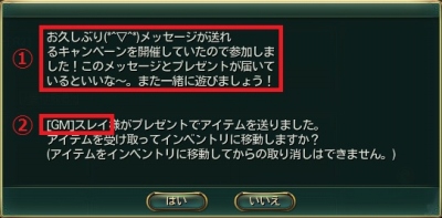 (1)キャンペーン期間中、復帰アカウントでゲームにログイン。