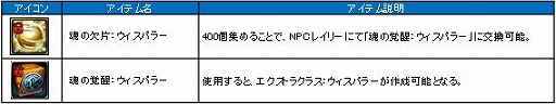 作成には、ストラグルマッチなどで獲得できる「魂の欠片:ウィスパラー」を400個集めた後、イベント管理人レイリーから「魂の覚醒:ウィスパラー」と交換します。