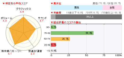 グラフィックス サウンド 快適さ/運営 熱中度/ストーリー ボリューム 5 3 3 4 4