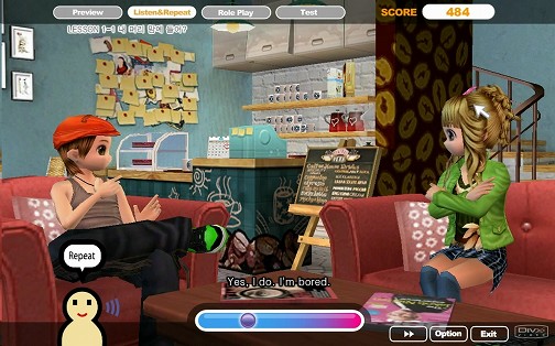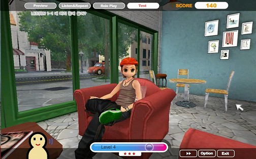 今回紹介するムービーには,一人のキャラになりきって英語を話したり,学習の成果をグラフで確認したりする様子が収録されている。発音の良し悪しがそのつど,Audition同様,「Perfect」「Excellent」といった掛け声で評価されるので,ゲーム感覚で楽しめそうだ(注:解説などは韓国語です)。