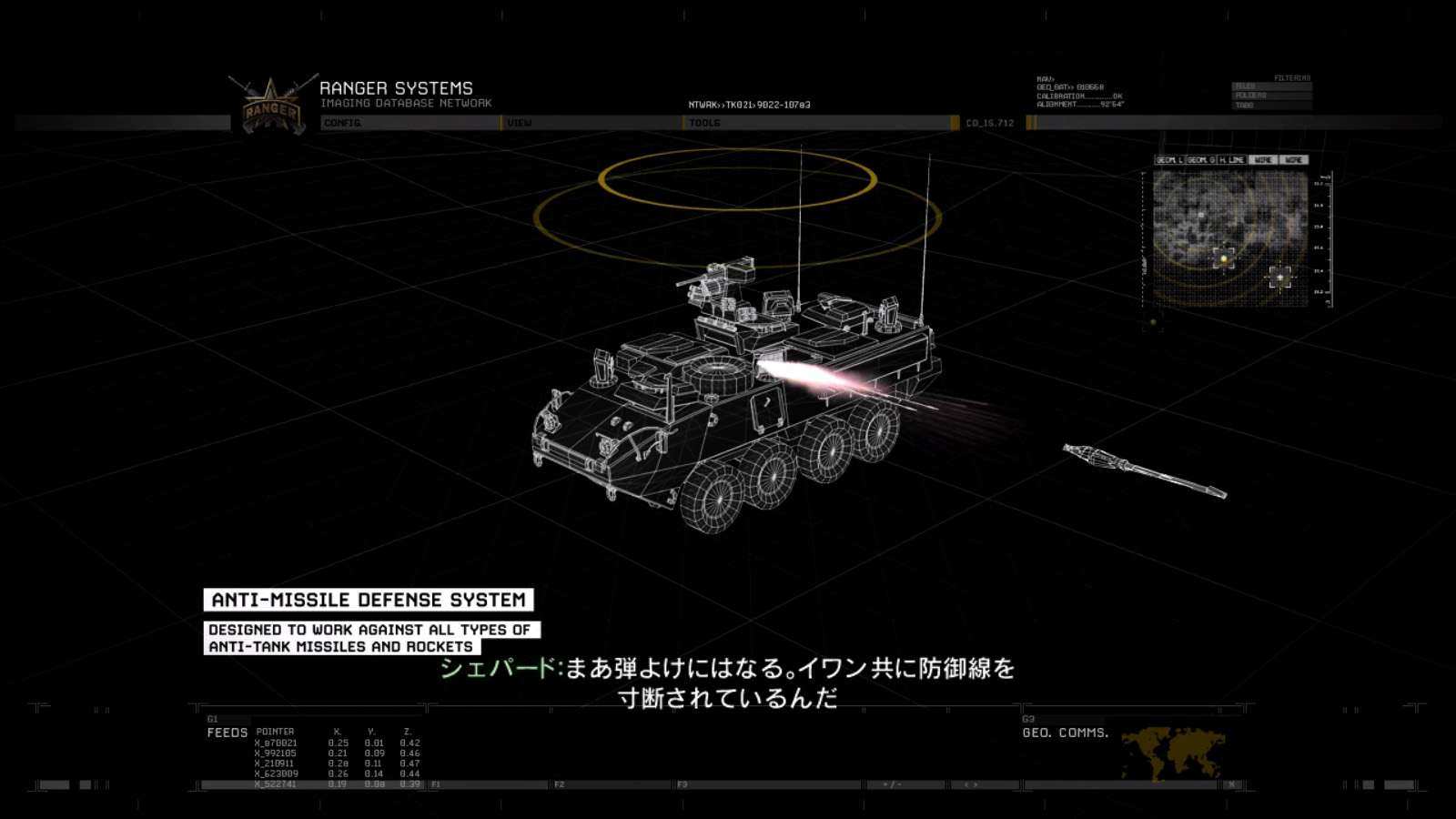 シェパード大将が「第8機甲師団から借りてきちゃった♪」とはしゃいでいる戦闘車両,「Stryker」(ストライカー)には先進的なアクティブ防御システム(APS=Active Protection System)が搭載されているという設定。