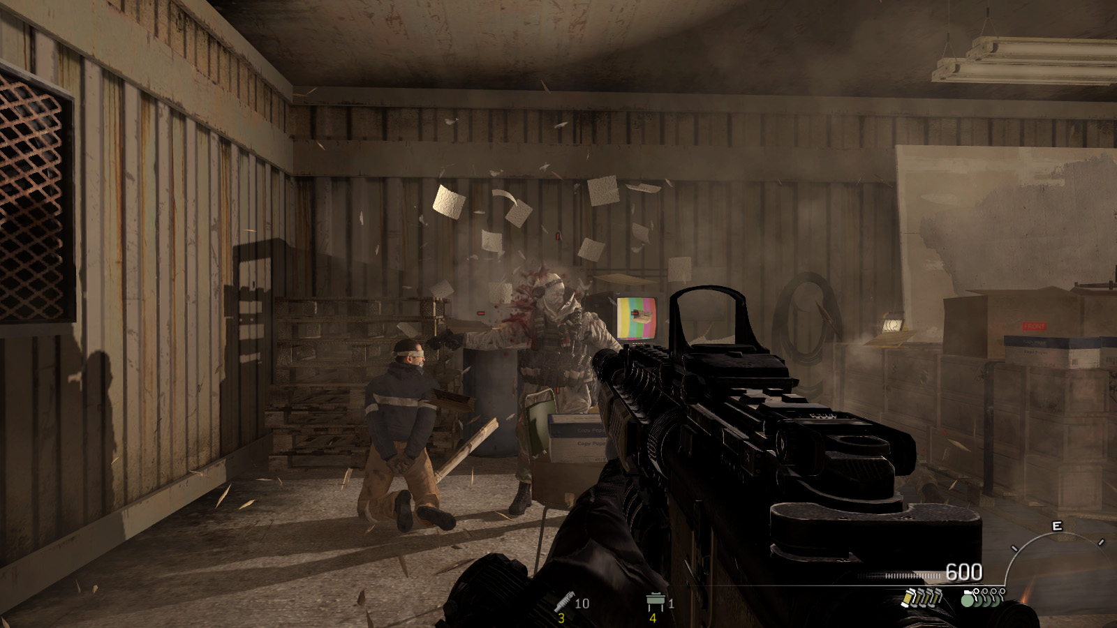 モスクワのザカエフ国際空港(架空の空港)で起きた,全世界を震撼させた事件。筆者が目を皿のようにして確認したところ,マカロフ一味が使っていた武器は,M4A1やM240軽機関銃,Thumper(M79グレネードランチャー),Striker(南アフリカ製)といった西側製の武器である。