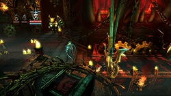 また,トラインはオンラインには対応していないものの,ホットシートの「Co-op」(協力プレイ)に対応しており,3人のプレイヤーがそれぞれ1キャラクターを担当してゲームを進められる。操作設定が3人分用意されているので,ここでプレイヤー1はキーボードとマウス,プレイヤー2と3はゲームパッドで操作,というように設定するだけでOKだ。
