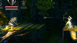 なお,ステージ内に隠されていたり,特定の敵を倒すことで出てきたりする「緑色のポーション」を50個集めると,キャラクターはレベルアップする。レベルが上がるごとに能力ポイントを一つ得られ,これを使って同時に発射できる矢の数を増やしたり,魔法で作れる木箱の数を増やしたりなど,キャラクターのスキルを強化可能だ。