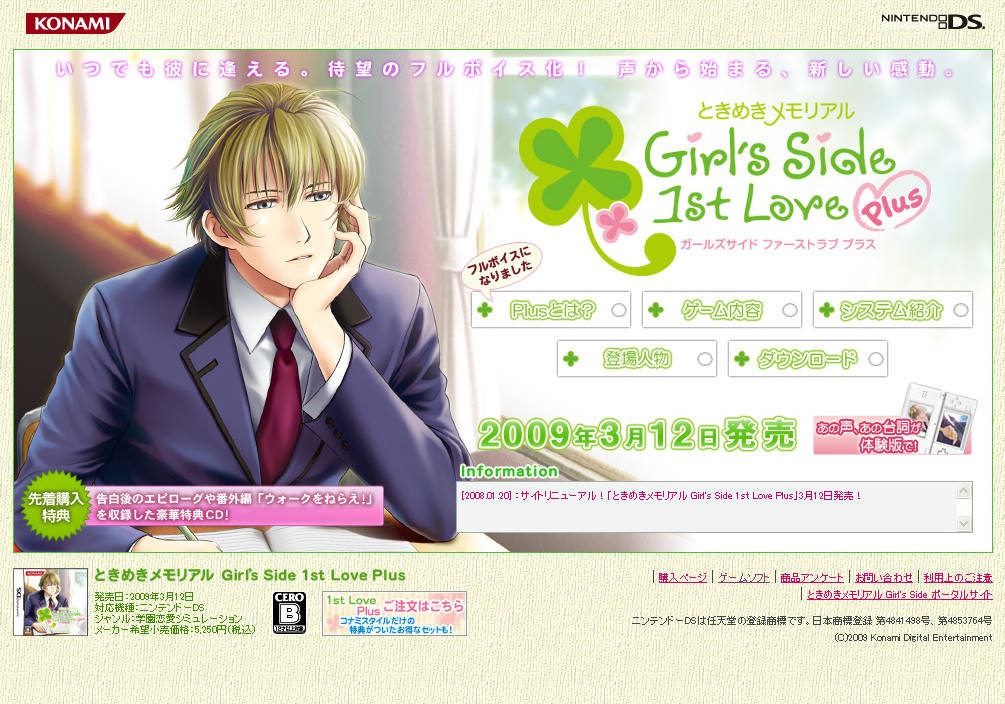 NDS「ときメモGS 1st Love Plus」公式サイトがリニューアル