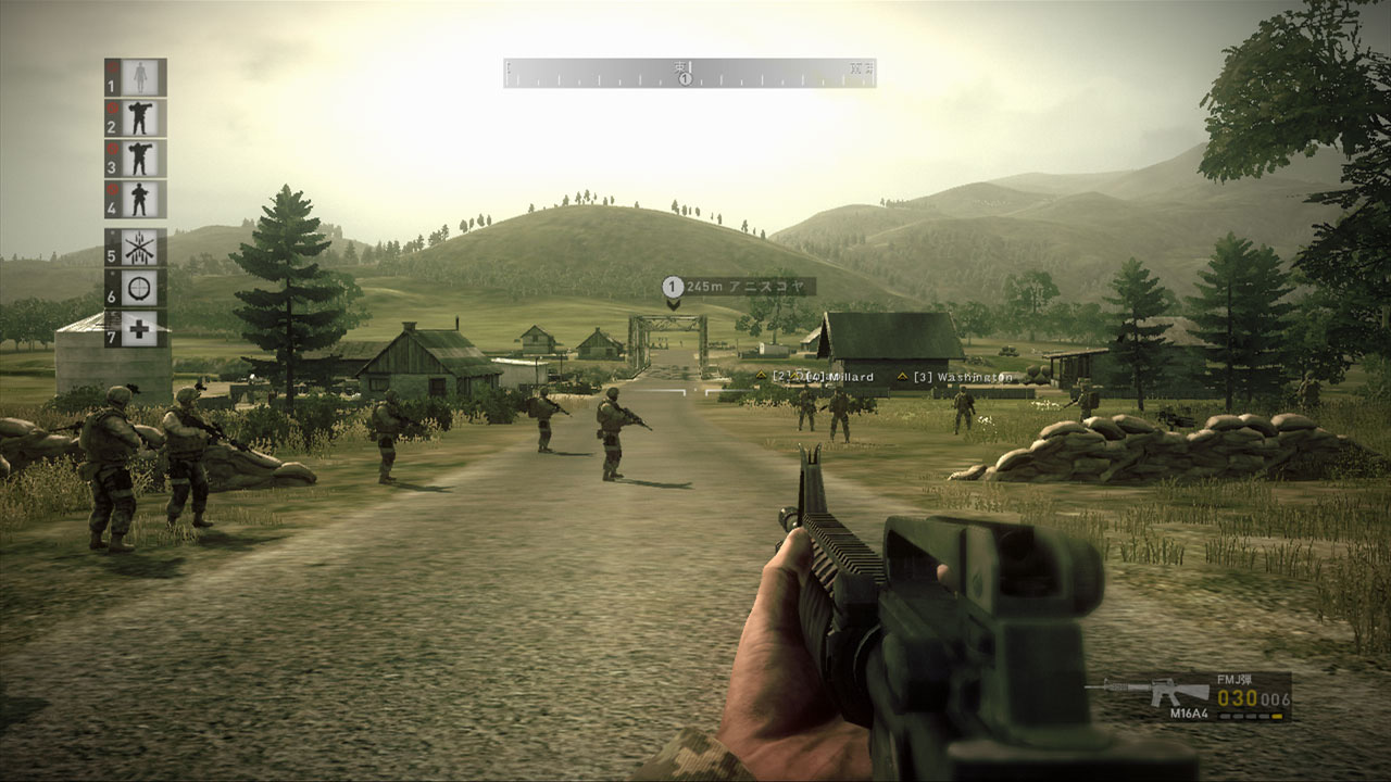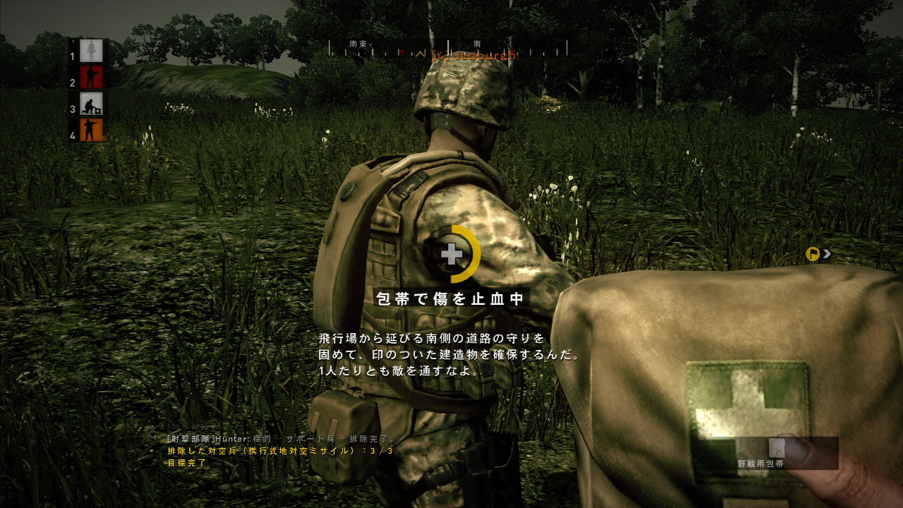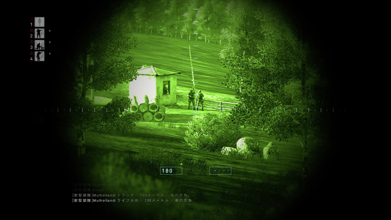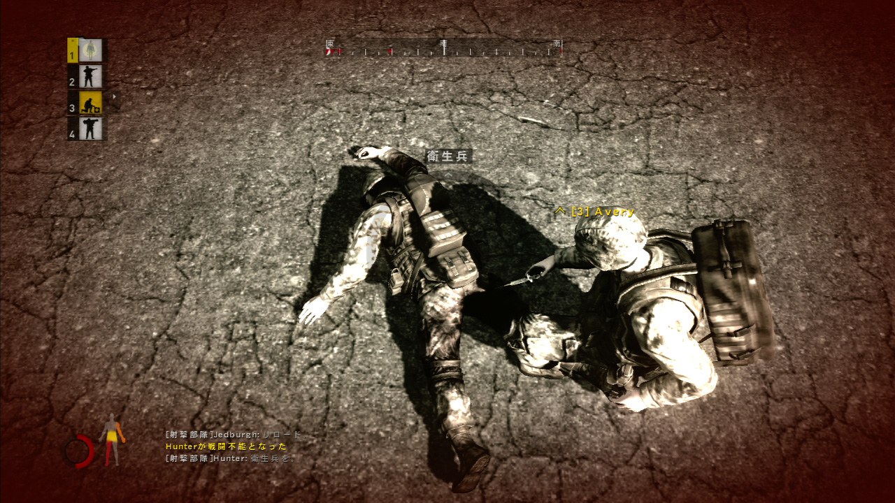 腕に被弾すれば銃の命中精度が低下し,足に被弾すれば走れなくなり,当たり所が悪ければたった一発の銃弾で即死する本作において,チームへの命令/支援要請は重要となる。