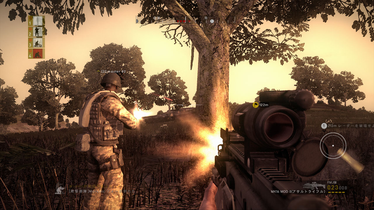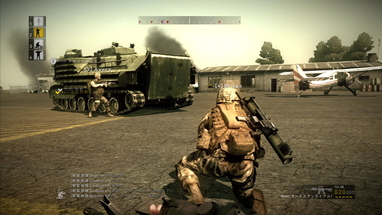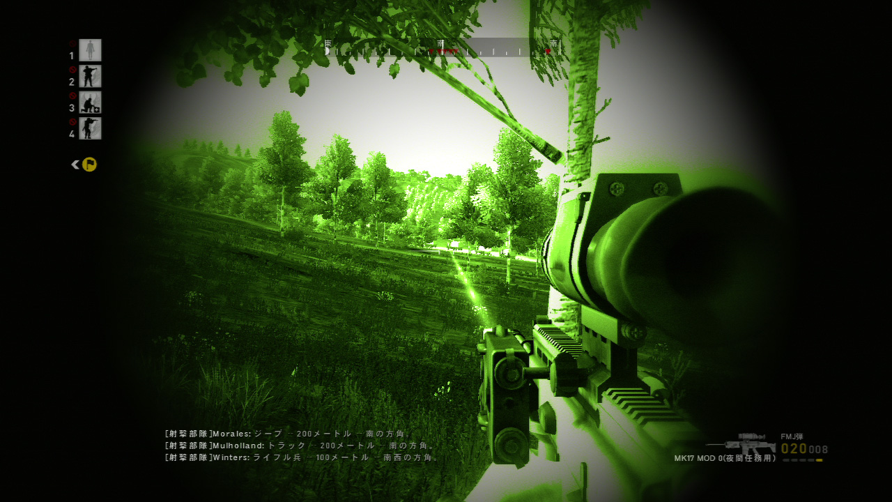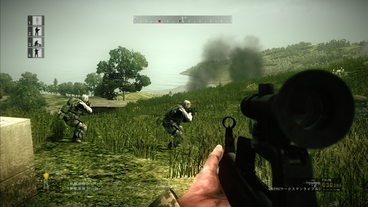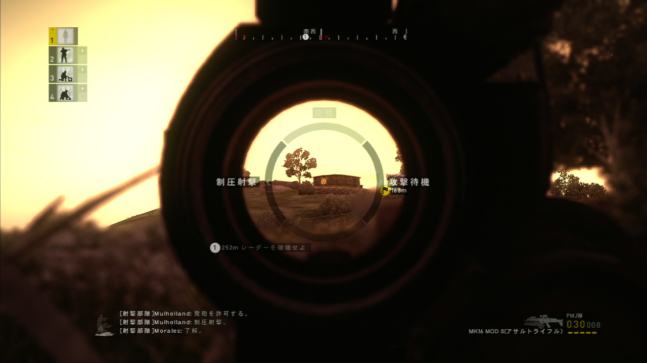 腕に被弾すれば銃の命中精度が低下し,足に被弾すれば走れなくなり,当たり所が悪ければたった一発の銃弾で即死する本作において,チームへの命令/支援要請は重要となる。