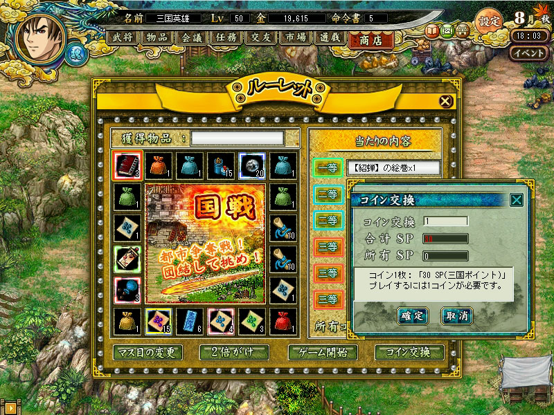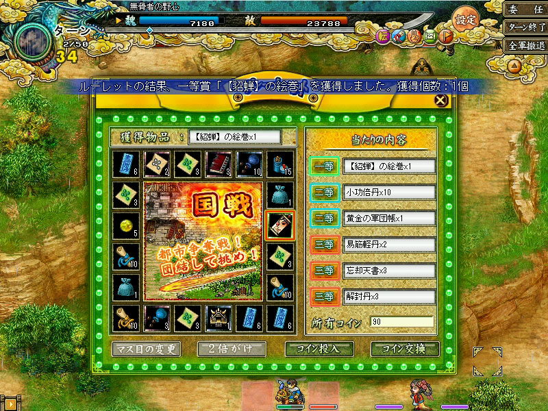 「三国ヒーローズ」,ランダムでアイテムが当るルーレットを実装