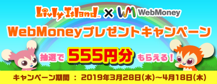 開催期間中、WebMoney決済を利用した方の中から抽選で55名様、もしくは『Livly Island』に新規登録した方の中から抽選で55名様に、555円分のWebMoney IDをプレゼント。